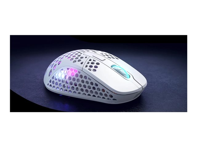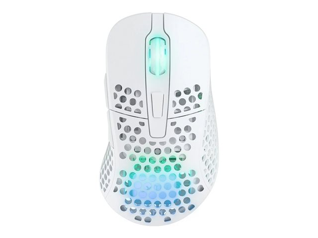 Produktbeskrivning CHERRY Xtrfy M4 - mus - RGB - 2.4 GHz - vit Typ av enhet Mus Anslutningsteknik Trådlös - 2.4 GHz Färg Vit Vikt 71 g Trådlös mottagare Trådlös USB-mottagare Teknik för rörelsedetektering Optisk Prestanda 125/500/1000 Hz avfrågningshastighet, sensivitetsomkoppling i realtid 400/800/1200/1600/3200/8000/19000 dpi Gaming Ja Egenskaper Pixart 3370-sensor, Kailh GM 8.0-omkopplare, ARM 32-bitars processor, texturerad matt yta -