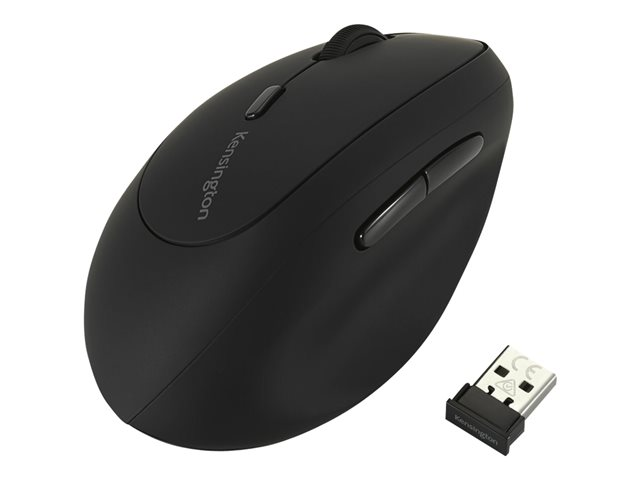 Produktbeskrivning Kensington Pro Fit Ergo Wireless Mouse - vertikal mus - 2.4 GHz Typ av enhet Vertikal mus - ergonomisk Anslutningsteknik Trådlös - 2.4 GHz Inriktning Vänsterhänt Dimensioner (BxDxH) 5.805 cm x 10.575 cm x 6.705 cm Vikt 80.5 g Trådlös mottagare Nano Antal knappar 6 Rörelseupplösning 1600 dpi Prestanda Realtidssensitivitetsomkoppling 800/1200/1600 dpi Batteri AA-typ Tillverkarens garanti 3 års garanti -