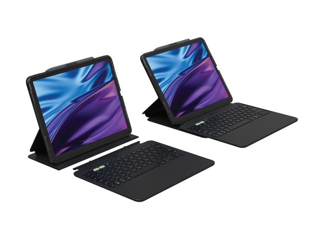 Produktbeskrivning ZAGG Pro Keys 2 - tangentbord och foliefodral (folioomslag) - QWERTY - Nordisk Inmatningsenhet Typ av enhet Tangentbord och foliefodral Bakgrundsbelyst 7 färger Gränssnitt Bluetooth Inmatningsenhet Löstagbart tangentbord Anslutningsteknik Trådlös Lokalisering och layout QWERTY Nordisk Vikt 226.8 g Tillverkarens garanti 2 års garanti Designat för Apple 13-inch iPad Air (M2, M3) -