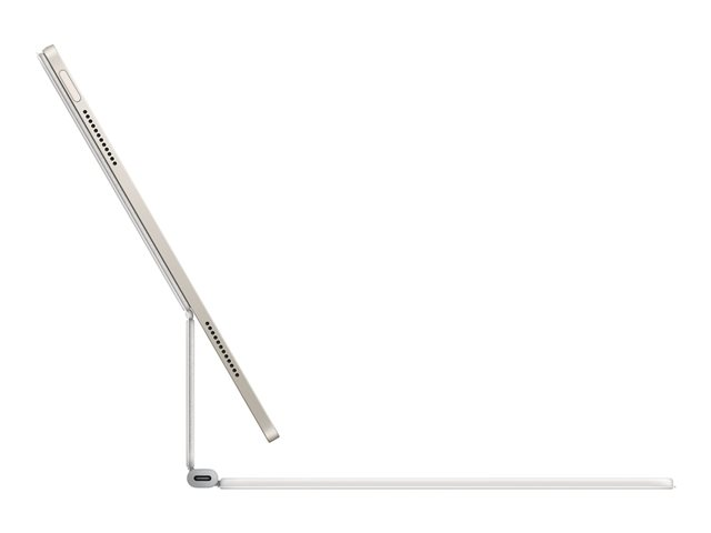 Produktbeskrivning Apple Magic Keyboard - tangentbord och foliefodral - med pekdyna - QWERTY - internationell engelska Inmatningsenhet Typ av enhet Tangentbord och foliefodral Gränssnitt Apple Smart connector Inmatningsenhet Inbyggt tangentbord Anslutningsteknik Kabelansluten Inbyggda enheter Pekdyna Lokalisering och layout QWERTY internationell engelska Snabbtangentsfunktion Volym, ljusstyrka Skydd Skydd bak, skydd fram Tillverkarens garanti 1 års garanti Designat för 13-inch iPad Air (M2, M3) -