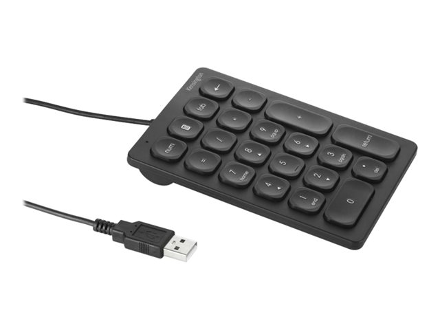 Produktbeskrivning Kensington - tangentsats Inmatningsenhet Typ av enhet Tangentsats Gränssnitt USB Anslutningsteknik Kabelansluten Antal tangenter 21 Tillverkarens garanti 3 års garanti -