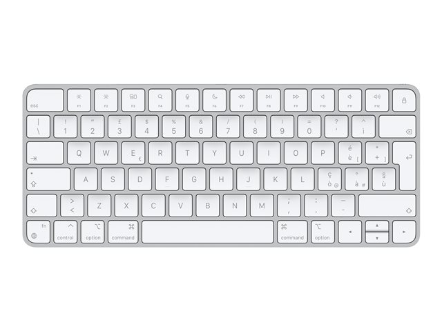 Produktbeskrivning Apple Magic Keyboard - tangentbord - QWERTY - italiensk Inmatningsenhet Typ av enhet Tangentbord Gränssnitt Bluetooth Anslutningsteknik Trådlös Lokalisering och layout QWERTY italiensk Snabbtangentsfunktion Utmatning av optiska medier, stänga av ljud, ljusstyrka, spela upp(paus, föregående spår, Mission Control, Launchpad, snabbspolning, volym -, volym + Dimensioner (BxDxH) 27.89 cm x 11.49 cm x 1.09 cm Vikt 239 g Tillverkarens garanti 1 års garanti -