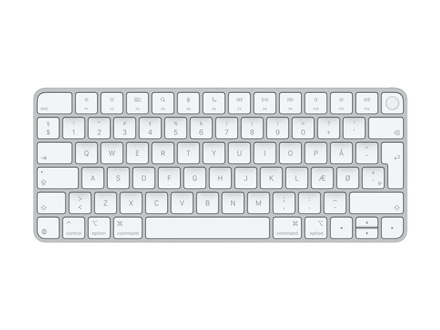 Produktbeskrivning Apple Magic Keyboard with Touch ID - tangentbord - USB-C - QWERTY - dansk Inmatningsenhet Typ av enhet Tangentbord Gränssnitt Bluetooth Anslutningsteknik Trådlös Lokalisering och layout QWERTY dansk Snabbtangentsfunktion Multimedia Säkerhetsenheter Fingeravtrycksläsare Dimensioner (BxDxH) 27.89 cm x 11.49 cm x 1.09 cm Vikt 243 g Tillverkarens garanti 1 års garanti -