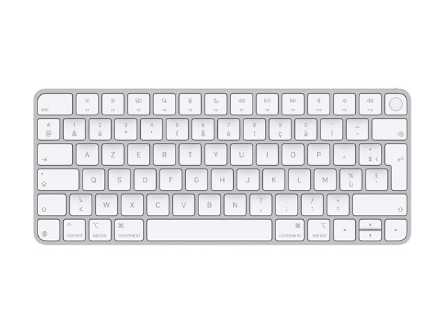 Produktbeskrivning Apple Magic Keyboard with Touch ID - tangentbord - USB-C - AZERTY - fransk Inmatningsenhet Typ av enhet Tangentbord Gränssnitt Bluetooth Anslutningsteknik Trådlös Lokalisering och layout AZERTY fransk Snabbtangentsfunktion Multimedia Säkerhetsenheter Fingeravtrycksläsare Dimensioner (BxDxH) 27.89 cm x 11.49 cm x 1.09 cm Vikt 243 g Tillverkarens garanti 1 års garanti -