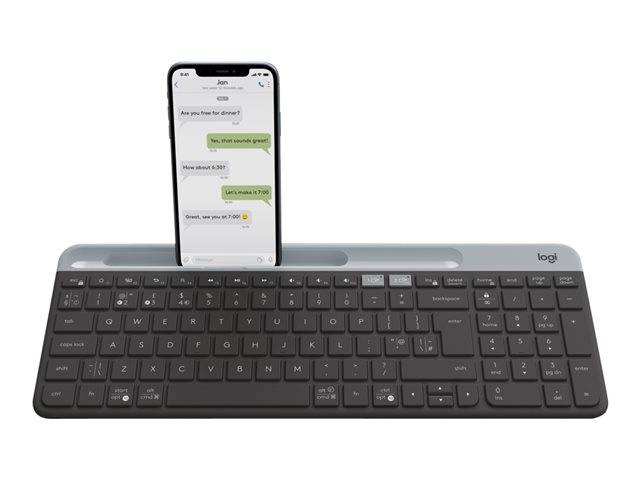 Produktbeskrivning Logitech Slim Multi-Device K580 - tangentbord - hela norden - grafit Inmatningsenhet Typ av enhet Tangentbord Gränssnitt Bluetooth, 2.4 GHz Trådlös mottagare Nano USB Logitech Unifying-mottagare Anslutningsteknik Trådlös Lokalisering och layout Hela norden Numeriskt tangentbord Ja Färg Grafit Dimensioner (BxDxH) 37.35 cm x 14.39 cm x 2.13 cm Vikt 558 g Tillverkarens garanti 1 års garanti -