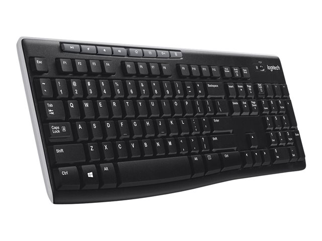 Produktbeskrivning Logitech Wireless Keyboard K270 - tangentbord - Nordisk Inmatningsenhet Typ av enhet Tangentbord Gränssnitt 2.4 GHz Trådlös mottagare Trådlös USB-mottagare Anslutningsteknik Trådlös Lokalisering och layout Nordisk Antal snabbtangenter 8 Snabbtangentsfunktion Internetsökning, e-post, volym, spela upp(paus Egenskaper Logitech Unifying-mottagare, spillresistent Microsoft-certifiering Compatible with Windows 7 -