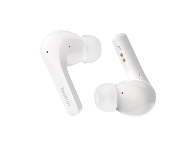 Produktbeskrivning Belkin SoundForm Motion - True wireless-hörlurar med mikrofon Typ av produkt True wireless-hörlurar - Bluetooth Kompatibilitet iPhone, Android-telefon, Windows, Chrome OS Rekommenderad användning Bärbar elektronik Färg Vit Hörlursmodell Inuti örat Trådlös teknik Bluetooth Bluetoothversion Bluetooth 5.2 Ljudutgångsläge Stereo Ljudeffekter Basförstärkning, Balanserat ljud, Signaturmelodi Active Noise Canceling Ja Ljudisolerande Ja Inkluderade mikrofoner 4 Kontroller Svara/avsluta, avvisa samtal, röstassistent, spela/pausa, nästa/föregående låt, equalizerförinställning Intelligent assistent Siri, Google Assistant - indirekt Tillverkarens garanti 2 års garanti -