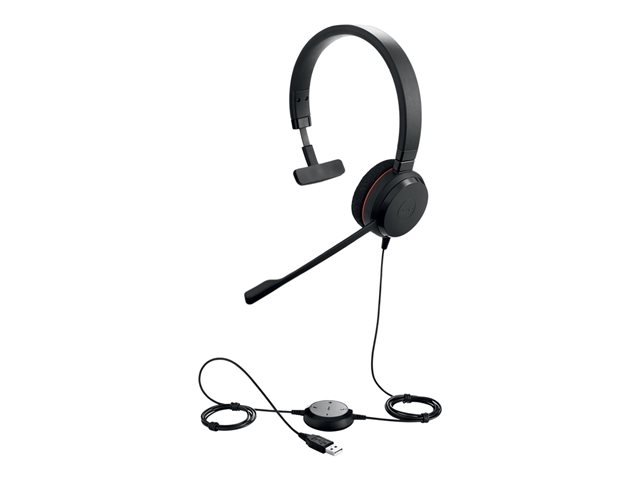 Produktbeskrivning Jabra Evolve 20 MS mono - headset - USB Typ av produkt Headset - kabelansluten - USB Rekommenderad användning Dator - kommunikation Hörlursmodell På örat Anslutningsteknik Kabelansluten Ljudutgångsläge Mono Ljudeffekter Crystal Clear Ljudspecifikationer Frekvensrespons 150 - 7000 Hz - Sensitivitet 93.6 dB Impedans 32 ohm Max. inmatningsström 5 mW Mikrofon Bom Mikrofontyp Kondensator för elektretmikrofon Kontroller Stänga av ljud, volym, svara/avsluta Mjukvarucertifiering Certifierad för Skype for Buisness Tillverkarens garanti 2 års garanti -