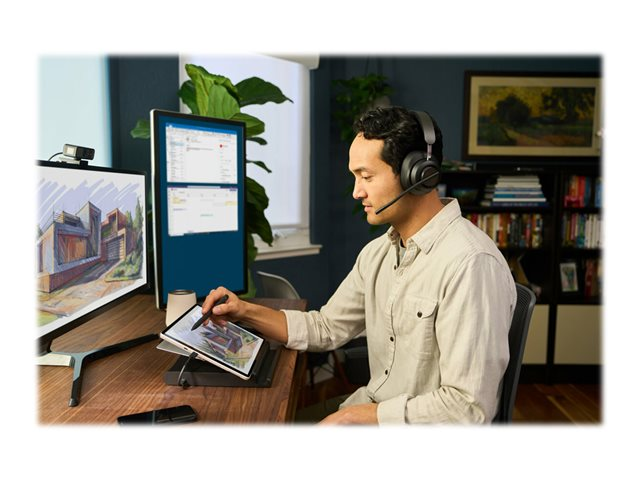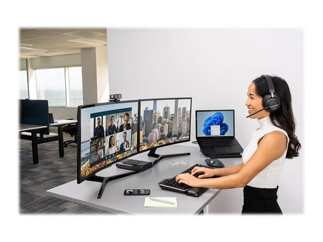 Produktbeskrivning Kensington H3000 - headset Typ av produkt Headset - Bluetooth - trådlös Kompatibilitet Windows, Mac, Chrome OS, iPhone, iPod, Android-telefon, Android-surfplatta Rekommenderad användning Konferens Hörlursmodell Fullstorlek Anslutningsteknik Trådlös Trådlös teknik Bluetooth Hörlursteknik Dynamisk Bluetoothversion Bluetooth 5.2 Ljudutgångsläge Stereo Ljudspecifikationer Frekvensrespons 20 - 20000 Hz - Sensitivitet 110 dB Impedans 32 ohm Max. inmatningsström 30 mW Mikrofon Bom Brusreducerande mikrofon Ja Kontroller Volym, ström på/av, Bluetooth, röstassistent, spela/pausa, busylight, sidetone, svara/avsluta Intelligent assistent Siri, Google Assistant Tillverkarens garanti 2 års garanti -