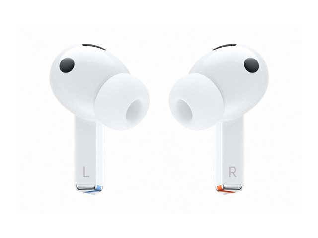 Produktbeskrivning Samsung Galaxy Buds3 Pro - True wireless-hörlurar med mikrofon Typ av produkt True wireless-hörlurar - Bluetooth Rekommenderad användning Bärbar elektronik Ytterligare funktioner 24-bit Hi-Fi audio, bladljus, SmartThings Find Färg Vit Hörlursmodell Inuti örat Trådlös teknik Bluetooth Bluetoothversion Bluetooth 5.4 Ljudeffekter Adaptive EQ, Ambient Sound Mode, 360 ljud Active Noise Canceling Ja Kontroller Klämstyrning, svepkontroll, röststyrning -