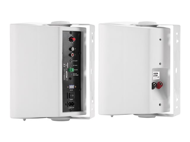 Produktbeskrivning Vision SP-1900P - högtalare - för PA-system Typ av produkt Högtalare - för PA-system Systemkomponenter 2 högtalare Kapslingsdesign Basreflex Högtalartyp 2-vägs - aktiv Kontinuerlig ström 15 Watt Toppström 30 Watt Frekvensrespons 45 - 20000 Hz Förstärkare Integrerad Gränssnitt Bluetooth Färg Vit Strömtillförsel AC 120/230 V (50/60 Hz) Tillverkarens garanti Begränsad livstidsgaranti -