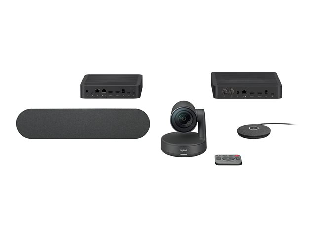 Produktbeskrivning Logitech Rally - paket för videokonferens Typ av enhet Paket för videokonferens Satsinnehåll Rally-kamera, Rally-displaynav, Rally-bordsnav, Rally-högtalare, Rally Mic Pod Videoingång Digital videokamera - SuperSpeed USB 3.0 Ljudingång Mikrofon - rundstrålande Ljudutgång Högtalare Inmatningsenhet Fjärrkontroll (trådlös) Systemkrav Microsoft Windows 7 / 8.1 / 10, Apple MacOS X 10.10 eller senare, Google Chrome OS Tillverkarens garanti 2 års garanti -