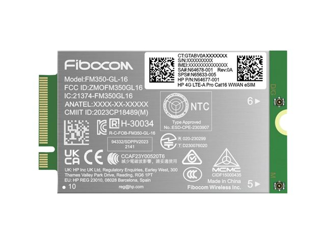 Produktbeskrivning HP - trådlöst mobilmodem - 4G LTE Advanced Pro Typ av enhet Trådlöst mobilmodem Formfaktor Intern Cellulärt protokoll FDD LTE, TDD LTE, UMTS, HSPA+, LTE Advanced Pro Cat 16 Systemkrav Windows 10, Windows 11 Dimensioner (BxDxH) 5.2 cm x 3 cm x 0.23 cm Vikt 9 g -