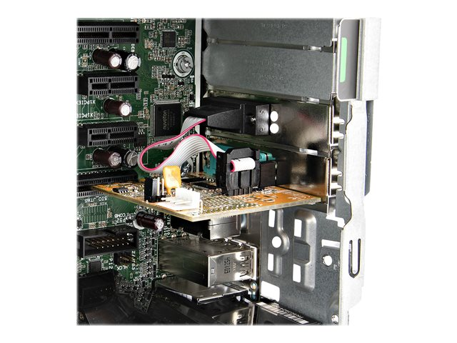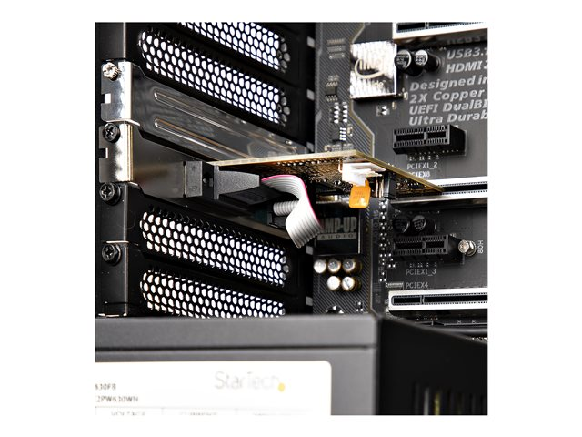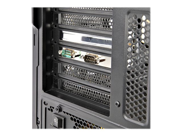 Produktbeskrivning StarTech.com 2-Port PCI Express Serial Card, Dual Port PCIe to RS232 (DB9) Serial Interface Card, 16C1050 UART, Standard or Low Profile Brackets, COM Retention, For Windows & Linux - PCIe to Dual DB9 Card (21050-PC-SERIAL-CARD) - seriell adapter - PCIe 2.0 - RS-232 x 2 Typ av enhet Seriell adapter Formfaktor Instickskort - låg profil Gränssnittstyp (buss) PCI Express 2.0 x1 Version av PCI-specifikation PCIe 2.0 Portar RS-232 x 2 Dimensioner (BxDxH) 1.8 cm x 6.5 cm x 6.7 cm Datalänkprotokoll RS-232 Dataöverföringshastighet 921.6 Kbps Standarder som följs 16C1050 UART Färg Gul Systemkrav Microsoft Windows 7 / 8 / 10 / 11, Microsoft Windows Server 2016, Microsoft Windows Server 2019, Linux Tillverkarens garanti 2 års garanti -