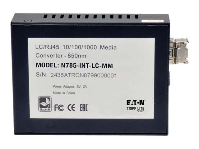 Eaton Tripp Lite Series Gigabit Multimode Fiber to Ethernet Media Converter, 10/100/1000 LC, International Power Supply, 850 nm, 550 m (1,804 ft.)
