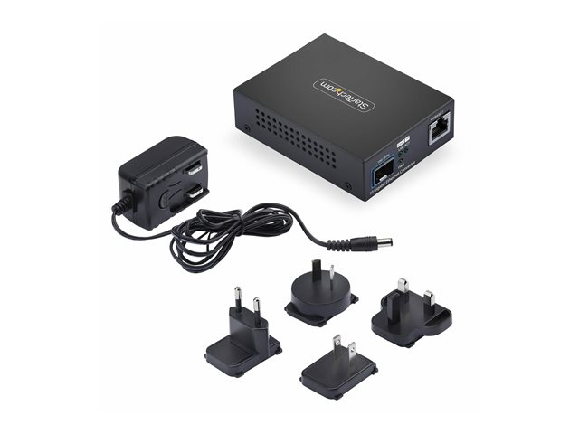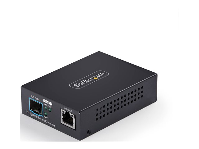 Produktbeskrivning StarTech.com - fibermediekonverterare - 10GbE - TAA-kompatibel Typ av enhet Fibermediekonverterare - SFP+ / RJ-45 Formfaktor Wall / rack / DIN rail mountable Typ av kablage 10GBase-X, 10GBase-T, 10GBase-LR, 10GBase-SR Dataöverföringshastighet 10 Gbps Datalänkprotokoll 10GbE Överföringsmedium Fiberoptik Strömtillförsel AC 100-240 V Dimensioner (BxDxH) 9.35 cm x 7 cm x 2.6 cm Vikt 216 g TAA-kompatibel Ja Tillverkarens garanti 2 års garanti -