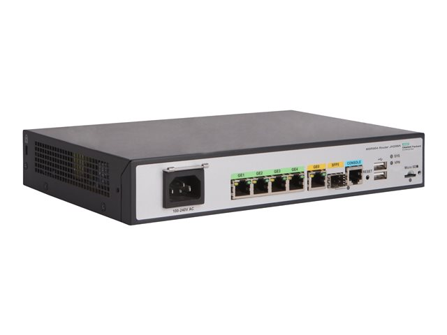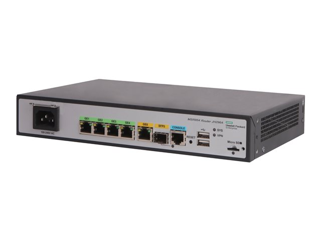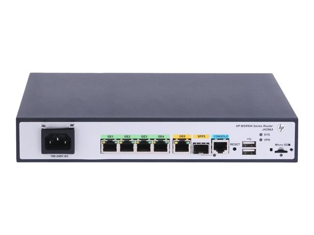Produktbeskrivning HPE MSR954 - router - rackmonterbar Typ av enhet Router - 4-ports-switch (inbyggd) Modell Rackmonterbar - 1U Antal WAN-portar 1 Datalänkprotokoll Ethernet, Fast Ethernet, Gigabit Ethernet Dataöverföringshastighet 1 Gbps Prestanda Avsändningsprestanda: upp till 300 Kpps