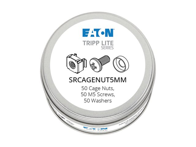 Produktbeskrivning Eaton Tripp Lite Series Rack Enclosure Square Hole Hardware M5 Screws & Washers 50PC - skruvar, muttrar och mellanläggsbrickor för rack Produkttyp Skruvar, muttrar och mellanläggsbrickor för rack Förpackningens innehåll 50 x M5 skruv, 50 PVC-koppbrickor, 50 M5 cage nuts Tillverkarens garanti 5 års garanti -
