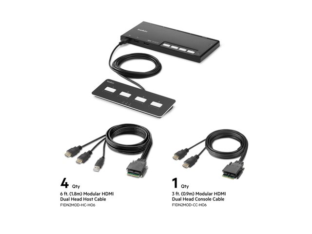 Produktbeskrivning Belkin Modular Secure Dual Head - omkopplare för tangentbord/video/mus - 4 portar - TAA-kompatibel Typ av enhet Omkopplare för tangentbord/video/mus - 4 portar Undertyp KVM Portar 4 x KVM port(s) Antal KVM-användare 1 lokal användare Strömtillförsel AC 120/230 V (50/60 Hz) TAA-kompatibel Ja -