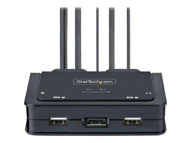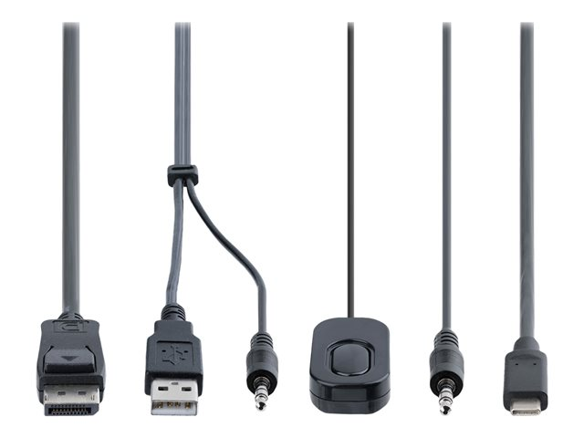 Produktbeskrivning StarTech.com 2-Port Hybrid USB-C DisplayPort Cable KVM Switch, 4K 60Hz, Compact KVM with 6ft/1.8m USB-A/DisplayPort/Audio & 4ft/1.2m USB-C Integrated Host Cables, Bus Powered - Remote Push Button/Hotkey Switching (C2-D46-UAC-CBL-KVM) - omkopplare för tangentbord/video/mus/ljud/USB - kompakt - 2 portar Typ av enhet Omkopplare för tangentbord/video/mus/ljud/USB - 2 portar Undertyp KVM Portar 2 x KVM/ljud/USB Antal KVM-användare 1 lokal användare Funktioner Drivs via USB, fjärromkopplare, DisplayPort alternativt läge, stöd för 2,1 ljudkanal, ABS-hus Standarder som följs USB 2.0 Dimensioner (BxDxH) 8 cm x 9.5 cm x 2.4 cm Vikt 380 g Färg Svart Systemkrav Microsoft Windows 7 / 8 / 8.1 / 10 / 11, Apple macOS 10.12 - 10.15, Apple macOS 11.0, Apple macOS 12.0, Google Chrome OS, Linux Tillverkarens garanti 2 års garanti -