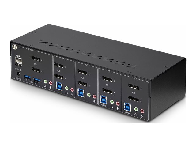 StarTech.com 4-Port Dual-Monitor DisplayPort KVM Switch, 4K 60Hz, 2x USB 5Gbps Hub Ports, 2x USB 2.0 HID Ports, Hotkey and Push-Button Switching, TAA Compliant