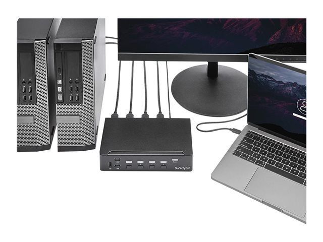 Produktbeskrivning StarTech.com HDMI KVM-switch med 4 portar - USB 3.0 - 1080p - omkopplare för tangentbord/video/mus/USB - 4 portar - rackmonterbar Typ av enhet Omkopplare för tangentbord/video/mus/USB - 4 portar Modell Rackmonterbar Undertyp KVM Portar 4 x KVM/ljud/USB + 3 x SuperSpeed USB Antal KVM-användare 1 lokal användare Funktioner Inbyggd 3 portars SuperSpeed USB 3.0-hubb Strömtillförsel Växelström 120/230 V/likström 9 - 12 V Lokalisering Australien, Nordamerika, Storbritannien, Europa Tillverkarens garanti 2 års garanti Designat för P/N: SV431RACK -