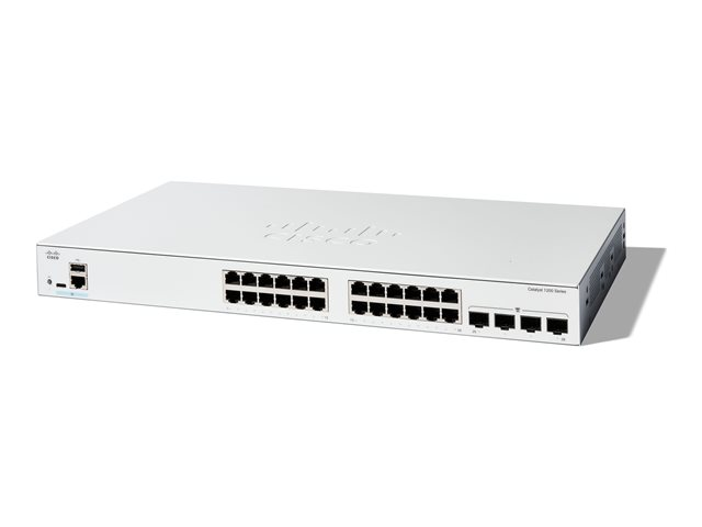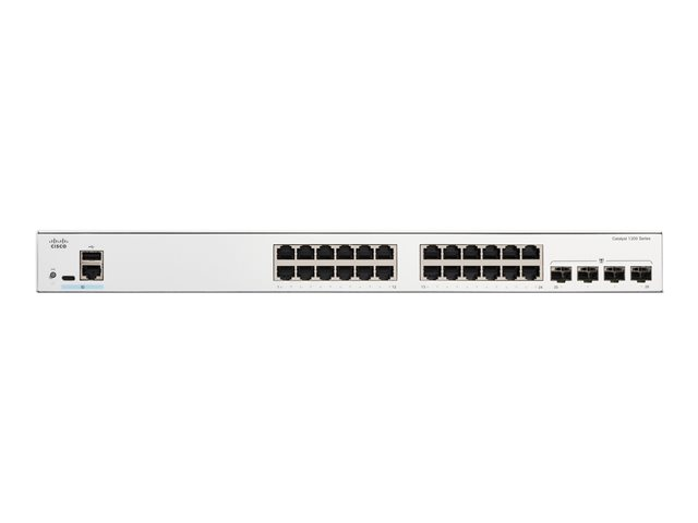 Produktbeskrivning Cisco Catalyst 1200-24T-4G - switch - 24 portar - smart - rackmonterbar Typ av enhet Switch - 24 portar - L3 - smart Modell Rackmonterbar Undertyp Gigabit Ethernet Portar 24 x 10/100/1000 + 4 x Gigabit SFP Prestanda Vidarebefordringshastighet (paket med 64 bytes): 41,66 Mpps