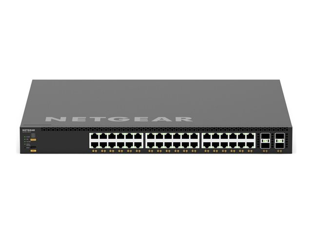 Produktbeskrivning NETGEAR AV Line M4350-36X4V - switch - 40 portar - Administrerad - rackmonterbar Typ av enhet Switch - 40 portar - L3 - Administrerad - staplingsbar Modell Främre till bakre luftflöde rackmonterbar 1U Undertyp 10 Gigabit Ethernet / 25 Gigabit Ethernet Portar 36 x 100/1000/2.5G/5G/10GBase-T (PoE++) + 4 x 1/10/25 Gigabit SFP28 PoE (Power Over Ethernet) PoE++ PoE-budget 280 W Prestanda Routing/omkopplingskapacitet: 920 Mbps