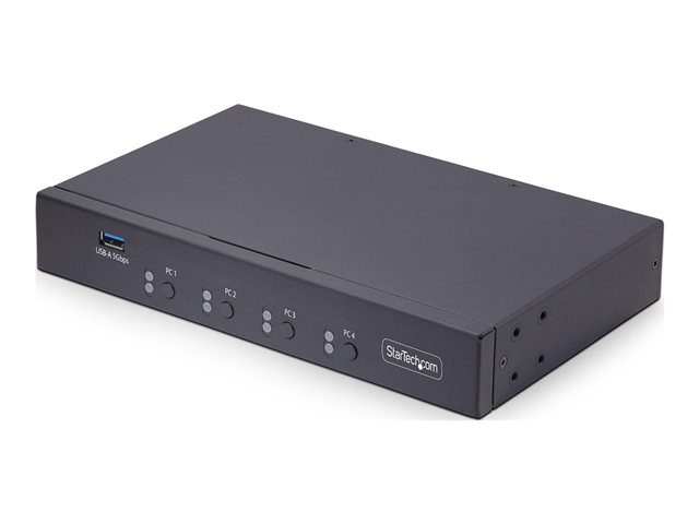 Produktbeskrivning StarTech.com 4-Port KM Switch with Mouse Roaming, USB Switch for Keyboard/Mouse, 3.5mm and USB Audio, Peripheral Sharing for 4 Computers, USB 3.0 Switcher, TAA Compliant - Hotkey/Pushbutton Switching (P4A20132-KM-SWITCH) - omkopplare för tangentbord/mus - 2 portar - TAA-kompatibel Typ av enhet Omkopplare för tangentbord/mus - 2 portar Undertyp USB Antal KVM-användare 1 lokal användare Funktioner Stålhus, musroaming Strömtillförsel AC 100-240 V Dimensioner (BxDxH) 13 cm x 22 cm x 3.4 cm Vikt 800 g Färg Svart TAA-kompatibel Ja Tillverkarens garanti 2 års garanti -