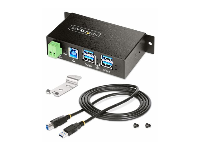 StarTech.com 4-Port Managed USB Hub with 4x USB-A, Heavy Duty with Metal Industrial Housing, ESD & Surge Protection, Wall/Desk/Din-Rail Mountable, USB 3.0/3.1/3.2 Gen 1 5Gbps
