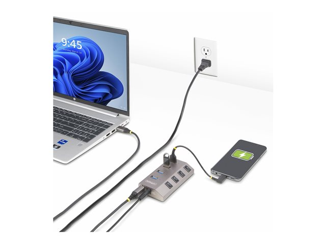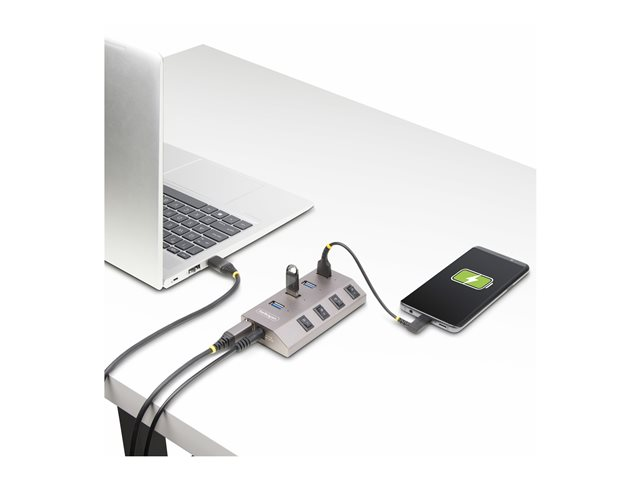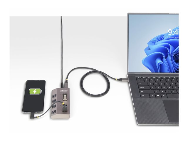 Produktbeskrivning StarTech.com 4-Port Self-Powered USB-C Hub with Individual On/Off Switches, USB 3.0 5Gbps Expansion Hub w/Power Supply, Desktop/Laptop USB-C to USB-A Hub, 4x BC 1.2 (1.5A), USB Type C Hub - USB-C/A Host Cables (5G4AIBS-USB-HUB-EU) - hubb - 4 portar Typ av enhet Hubb - 4 portar Undertyp USB Portar 4 x USB 3.2 Gen 1 Funktioner Stöd för snabbladdning, 4 på-/av-knappar, aluminiumhus, egendrivet läge, CDP, DCP Standarder som följs USB 3.2 Gen 1, USB 3.0, USB 2.0, USB 1.1, Battery Charging 1.2 Strömtillförsel AC 110-240 V Dimensioner (BxDxH) 11.4 cm x 5.9 cm x 2.1 cm Vikt 128 g Systemkrav Android, Apple iPadOS, Apple MacOS, Google Chrome OS, Microsoft Windows Lokalisering Europa, Storbritannien Tillverkarens garanti 2 års garanti -