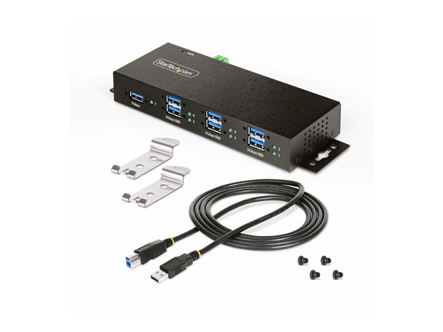 StarTech.com 7-Port Managed USB Hub with 7x USB-A, Heavy Duty with Metal Industrial Housing, ESD & Surge Protection, Wall/Desk/Din-Rail Mountable, USB 3.0/3.1/3.2 Gen 1 5Gbps