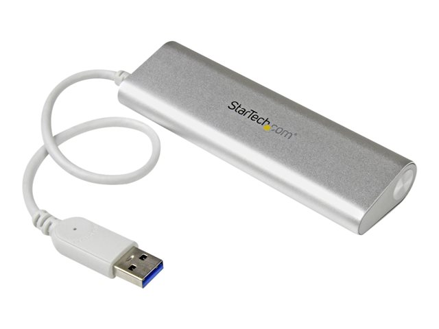 Produktbeskrivning StarTech.com Bärbar USB 3.0-hubb med 4 portar och inbyggd kabel - hubb - 4 portar Typ av enhet Hubb - 4 portar Undertyp USB Portar 4 x SuperSpeed USB 3.0 Standarder som följs USB 1.1, USB 2.0, USB 3.0 Dimensioner (BxDxH) 11.2 cm x 3.6 cm x 1.8 cm Vikt 82 g Färg Vit, silver Tillverkarens garanti 2 års garanti -
