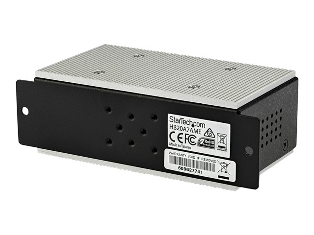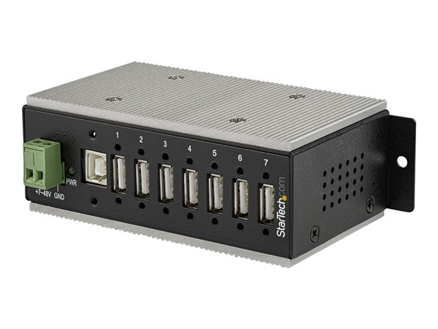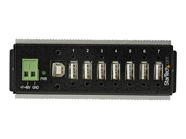 Industriell USB-A-hubb i metall med ESD- och 350 W överspänningsskydd - Utökad driftstemperatur -40 till 85 °C - monterbar på DIN-skena/vägg/skrivbord - USB-expansionshubb - Hubb - 7 x USB 2.0 - DIN-skenmonterbar - Likström - TAA-kompatibel - för P/N: ITB20D3250
