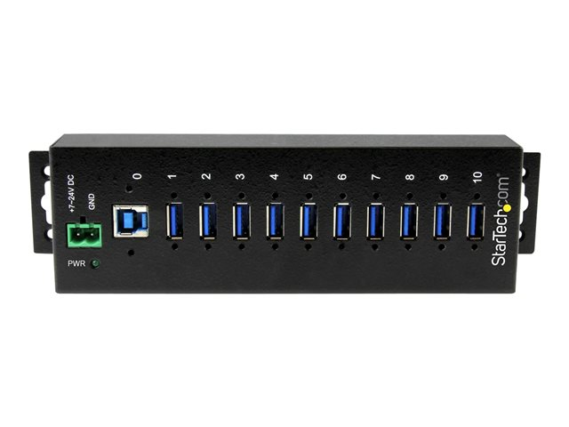 Industriell USB-A-hubb i metall med ESD- och överspänningsskydd - Monterbar på DIN-skena, vägg eller skrivbord - TAA-kompatibel USB-expansionshubb - Hubb - 10 x SuperSpeed USB 3.0 - DIN-skenmonterbar - Likström - för P/N: ITB20D3250, USB312SAT3CB, USB315CB2M, USBLT1MWS, USBLT2MBR, USBLTM1MBK, USBLTM1MWH