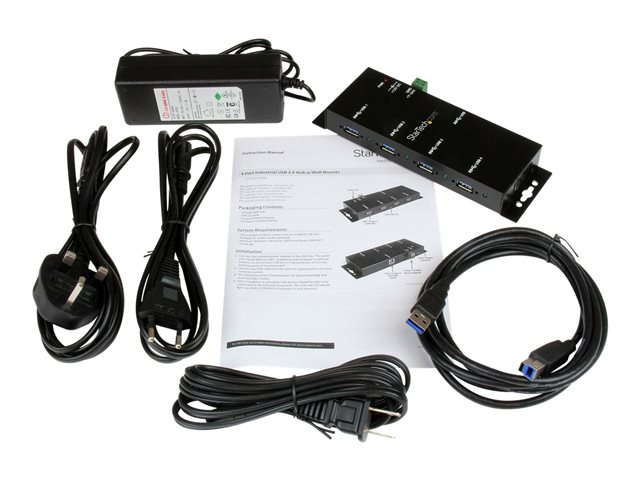 Industriell USB-A-hubb i metall - USB-datahubb som kan monteras på vägg eller skrivbord - TAA-kompatibel USB-expansionshubb - Hubb - 4 x SuperSpeed USB 3.0 - skrivbordsmodell - Likström - för P/N: ITB20D3250, MSDREADU2OTG, SVA12M5NA, USB312SAT3CB, USB315CB2M, USBLTM1MBK, USBLTM1MWH