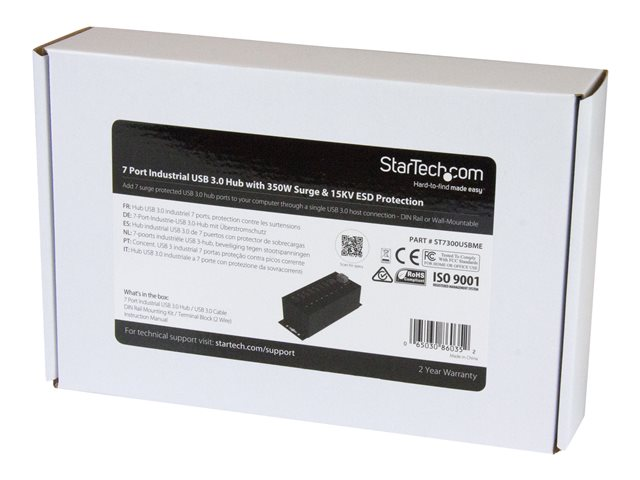 Produktbeskrivning StarTech.com USB 3.0-hubb med 7 portar - Industriell USB-A-hubb i metall med ESD-skydd och 350 W överspänningsskydd - Monterbar på DIN-skena, vägg eller skrivbord - TAA-kompatibel USB-expansionshubb - hubb - 7 portar Typ av enhet Hubb - 7 portar Undertyp USB Portar 7 x SuperSpeed USB 3.0 Funktioner Överspänningsskydd, robust, 15KV ESD Protector, metallhölje Standarder som följs USB 1.1, USB 2.0, USB 3.0 Strömtillförsel Likström 7 - 48 V Dimensioner (BxDxH) 5.5 cm x 12.2 cm x 4.3 cm Vikt 650 g Färg Svart Tillverkarens garanti 2 års garanti Designat för P/N: ITB20D3250, USB312SAT3CB, USB315CB2M, USBLT1MW, USBLT1MWS, USBLT2MBR, USBLT2MW, USBLT30CMW, USBLTM1MBK, USBLTM1MWH, UUSBHAUB1RA, UUSBHAUB3, UUSBHAUB3LA, UUSBHAUB3RA, UUSBHAUB6IN, UUSBHAUB6RA -