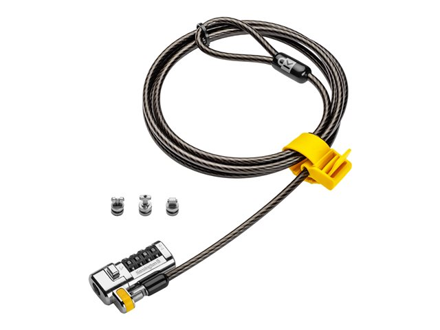 Produktbeskrivning Kensington ClickSafe Universal Combination Laptop Lock - lås för säkerhetskabel Produkttyp Lås för säkerhetskabel Produktmaterial Kolstål Dimensioner (BxDxH) 3.76 cm x 1.42 cm x 3.25 cm Längd 1.8 m Vikt 230 g Egenskaper Kombinationslås, T-stånglås, skärresistent, svängbart låshuvud Lokalisering Europa Tillverkarens garanti 2 års garanti -