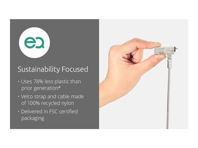Produktbeskrivning Kensington Slim NanoSaver 2.0 EQ - lås för säkerhetskabel - huvudnyckel Produkttyp Lås för säkerhetskabel - huvudnyckel Produktmaterial Stainless steel Längd 1.8 m Egenskaper 5mm Keying System, stöldskydd, Register & Retrieve Tillverkarens garanti 5 års garanti -