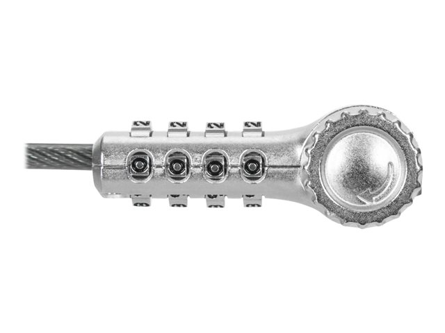 Produktbeskrivning Targus DEFCON - lås för säkerhetskabel Produkttyp Lås för säkerhetskabel Färg Silver Produktmaterial Galvaniserat stål Dimensioner (BxDxH) 203 cm x 1.8 cm x 4.88 cm Längd 2 m Vikt 172 g Egenskaper Kombinationslås, 4-siffrig kod, 360 graders huvudrotation, skärresistent, flexibel kabeldragning Tillverkarens garanti 2 års garanti -