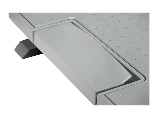Produktbeskrivning Kensington SoleMate Pro - fotstöd Produkttyp Fotstöd Färg Grå Produktmaterial ABS (acrylonitrile butadiene styrene), HIPS (High Impact Polystyrene) Dimensioner (BxDxH) 53 cm x 34 cm x 9 cm Vikt 2.7 kg Egenskaper SmartFit, låsbar, justerbar höjd, justerbar vinkel, lutningsjustering, halkskyddsbas Lokalisering Europa Tillverkarens garanti 2 års garanti -
