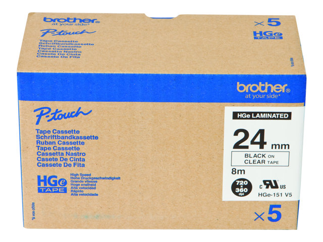 Produktbeskrivning Brother HGE-151V5 - bandlaminat - 5 kassett(er) - Rulle ( 2,4 cm x 8 m) Typ av produkt Bandlaminat Mediastorlek Rulle ( 2,4 cm x 8 m) Mediefärger Svart på klar Medföljande antal 5 kassett(er) Kompatibel med P-Touch PT-9500pc, PT-9700PC, PT-9800PCN -