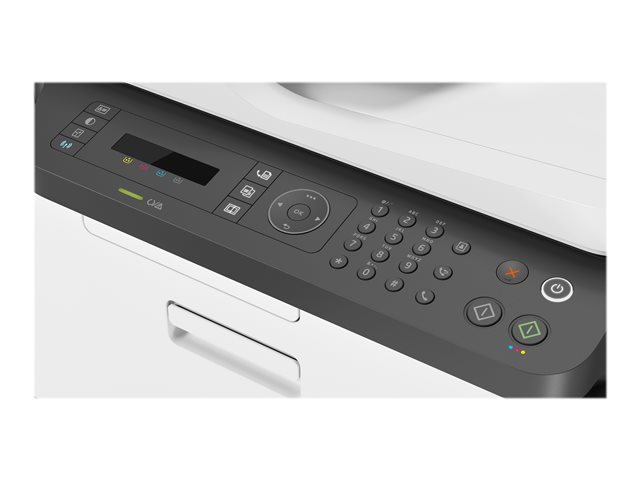 Produktbeskrivning HP Color Laser MFP 179fnw - multifunktionsskrivare - färg Typ av enhet Multifunktionsskrivare Faxtyp Vanligt papper Lokalisering Engelska, tyska, franska, italienska, spanska / Europa Utskriftsteknik Laser (färg) Driftscykel per månad (max) 20000 sidor Rekommenderad månatlig volym 100 - 500 sidor Max kopieringshastighet Upp till 14 sidor/minut (mono)/upp till 4 sidor/minut (färg) Max kopieringsupplösning Upp till 600 x 600 dpi (mono)/upp till 600 x 600 dpi (färg) Max utskriftshastighet Upp till 18 sidor/minut (mono)/upp till 4 sidor/minut (färg) Max utskriftsupplösning Upp till 600 x 600 dpi (mono)/upp till 600 x 600 dpi (färg) Max faxöverföringshastighet 33.6 Kbps Faxupplösningar 203 x 98 dpi, 203 x 196 dpi, 300 x 300 dpi Skanning 600 x 600 dpi Originalstorlek A4 (210 x 297 mm) (max) Originaltyp Ark Dokumentmatarens kapacitet 40 ark Mediastorlek 76 x 148.5 mm (min) - 216 x 356 mm (max) Mediatyp Etiketter, returpapper, bond paper, tjockt papper, extra tjockt papper, lätt papper, glansigt papper, förtryckt papper, färgat papper Standard mediekapacitet 150 ark Utmatningsfackens kapacitet 50 ark Anslutningsmöjlighet Ja Gränssnitt USB 2.0, LAN, Wi-Fi(n) Kontorsmaskinfunktioner Trådlös direktutskrivning, AirPrint-klar, Mopria-certifierad, mobil utskrift, skanna till PC, Google Cloud Print Strömtillförsel AC 230 V (50/60Hz) Dimensioner (BxDxH) 40.6 cm x 36.3 cm x 34.41 cm Vikt 14.08 kg Tillverkarens garanti 1 års garanti -