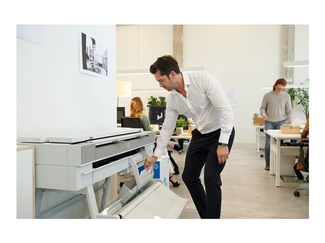 Produktbeskrivning HP DesignJet T950 - multifunktionsskrivare - färg Typ av enhet 36" multifunktionsskrivare Lokalisering Engelska, tyska, franska, italienska, spanska / Europa Utskriftsteknik Bläckstråle (färg) Bläckstråleteknik 4-färgs Max kopieringsupplösning Upp till 600 dpi (mono)/upp till 600 dpi (färg) Max utskriftshastighet Upp till 0.35 min/sida (mono)/upp till 0.35 min/sida (färg) Max utskriftsupplösning Upp till 2 400 x 1 200 dpi (mono)/upp till 2 400 x 1 200 dpi (färg) Skanning 600 x 600 dpi Mediastorlek Rulle (91,4 cm x 91,4 m) (max) Standard mediekapacitet 1 rulle Anslutningsmöjlighet Ja Gränssnitt Gigabit LAN, Wi-Fi Kontorsmaskinfunktioner Utskrift från e-post, utskrift från mobila enheter -
