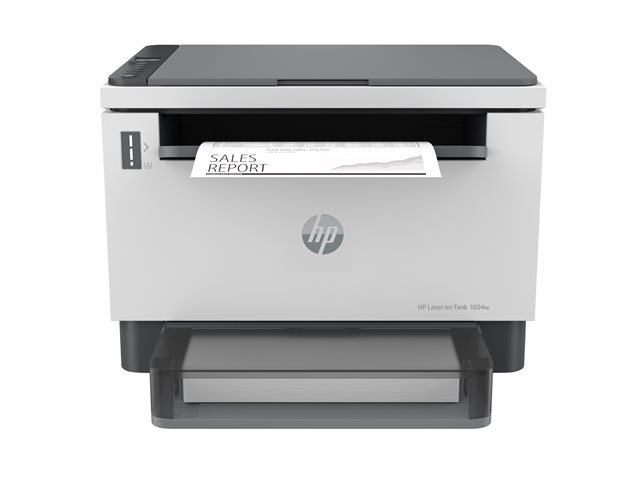 Produktbeskrivning HP LaserJet Tank MFP 1604w - multifunktionsskrivare - svartvit Typ av enhet Multifunktionsskrivare Lokalisering Engelska, tyska, spanska, franska, italienska / Europa Utskriftsteknik Laser (monokrom) Driftscykel per månad (max) 25000 sidor Rekommenderad månatlig volym 250 - 2 500 sidor Max kopieringshastighet Upp till 14 sidor/minut Max kopieringsupplösning Upp till 600 x 600 dpi Max utskriftshastighet Upp till 22 sidor/minut Max utskriftsupplösning Upp till 600 x 600 dpi Skanning 600 x 1200 dpi Originalstorlek 216 x 297 mm (max) Originaltyp Ark Dokumentmatarens kapacitet 40 ark Mediastorlek 102 x 152 mm (min) - Legal (216 x 356 mm), A4 (210 x 297 mm) (max) Mediatyp Vanligt papper, kuvert, etiketter, kortlager, brevkort Standard mediekapacitet 150 ark Max mediekapacitet 150 ark Utmatningsfackens kapacitet 100 ark Anslutningsmöjlighet Ja Gränssnitt USB 2.0, LAN, Wi-Fi(n), Bluetooth LE AirPrint-aktiverad Ja Kontorsmaskinfunktioner Skanna till PDF, skanna till e-post, utskrift från mobila enheter, automatiskt pappersavkännare, HP Auto-On/Auto-Off Technology, Mopria-certifierad Strömtillförsel AC 230 V (50/60Hz) Dimensioner (BxDxH) 36.8 cm x 32.6 cm x 25.5 cm Vikt 7.9 kg Miljöstandarder ENERGY STAR-godkänd, Blue Angel -