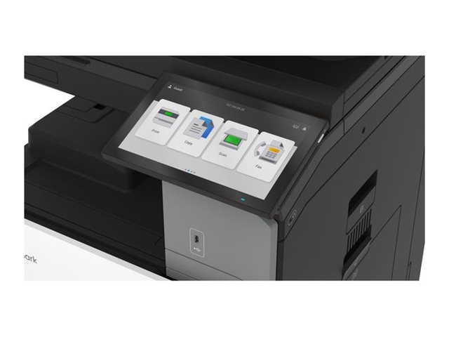 Produktbeskrivning Lexmark CX833se - multifunktionsskrivare - färg Typ av enhet Multifunktionsskrivare Faxtyp Vanligt papper Utskriftsteknik Laser (färg) Driftscykel per månad (max) 270000 sidor Rekommenderad månatlig volym 7 000 - 50 000 sidor Max kopieringshastighet Upp till 55 sidor/minut (mono)/upp till 55 sidor/minut (färg) Max utskriftshastighet Upp till 55 sidor/minut (mono)/upp till 55 sidor/minut (färg) Max utskriftsupplösning Upp till 1200 x 1200 dpi (mono)/upp till 1200 x 1200 dpi (färg) Maximal utskriftsupplösningsklass Upp till 1200 x 1200 dpi (mono)/upp till 1200 x 1200 dpi (färg) Skanning 300 x 300 dpi Display 10" Originaltyp Ark Dokumentmatarens kapacitet 300 ark Mediastorlek Legal (216 x 356 mm)/A4 (210 x 297 mm) (max) Mediatyp Vanligt papper, kuvert, etiketter, kortlager, glansigt papper Standard mediekapacitet 700 ark Max mediekapacitet 4750 ark Kapacitet hos förbikopplande dokumentmatare 150 ark Utmatningsfackens kapacitet 500 ark Automatisk duplex Ja (kopiering) Ja (utskrift) Ja (skannar) Anslutningsmöjlighet Ja Gränssnitt USB 2.0, Gigabit LAN, Wi-Fi(ac), USB 2.0-värd Kontorsmaskinfunktioner Skanna till e-post, skanna till USB-värd, skanna till nätverk, skanna till FTP, spara till USB Flash-enhet Dimensioner (BxDxH) 59.2 cm x 66 cm x 85.8 cm Vikt 90.1 kg Miljöstandarder EPEAT Silver, ENERGY STAR-godkänd Tillverkarens garanti 1 års garanti -