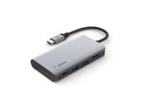Produktbeskrivning Belkin CONNECT 4-in-1 hubbadapter för flera portar - USB-C - HDMI Typ av produkt Hubbadapter för flera portar Dockningsgränssnitt USB-C Videogränssnitt HDMI Dimensioner (BxDxH) 9 cm x 4.5 cm x 1.3 cm -