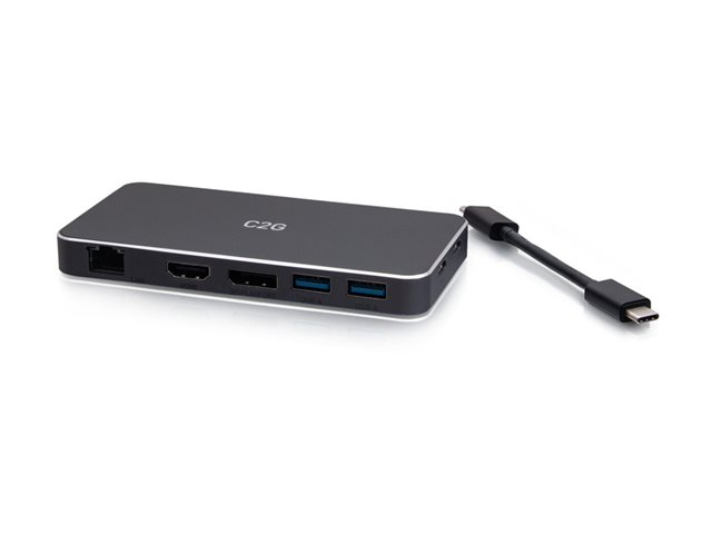 C2G USB-C 7-in-1 Dual Display MST Docking Station with HDMI, DisplayPort, Ethernet, USB, and Power Delivery up to 100W