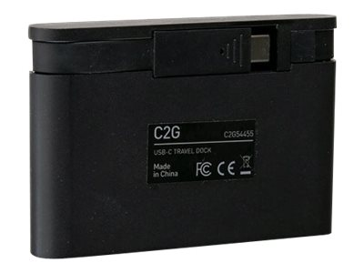 Produktbeskrivning C2G USB C Dock with HDMI, USB, Ethernet, USB C & Power Delivery up to 100W - dockningsstation - USB-C / Thunderbolt 3 - HDMI - 1GbE Typ av produkt Dockningsstation Dockningsgränssnitt USB-C / Thunderbolt 3 Videogränssnitt HDMI Dimensioner (BxDxH) 9 cm x 6 cm x 1.55 cm Vikt 66 g Färg Svart Nätverk Gigabit Ethernet Tillverkarens garanti 5 års garanti -