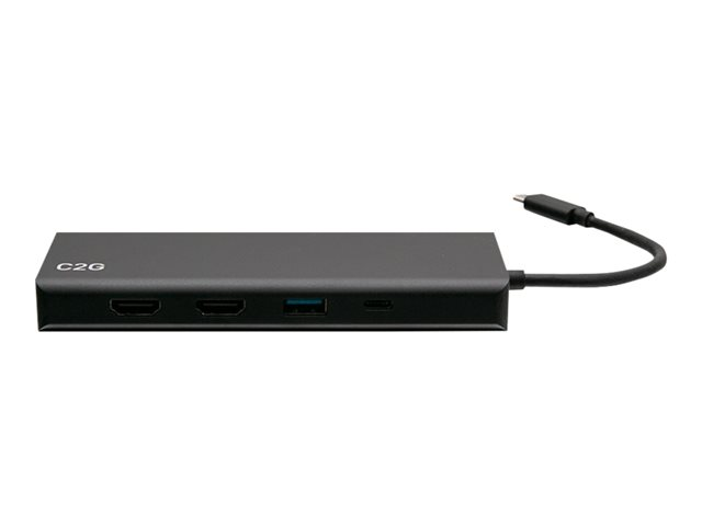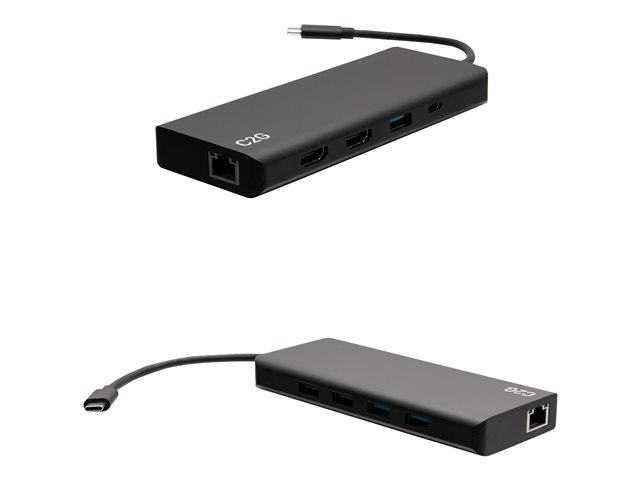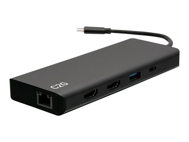 Produktbeskrivning C2G USB C Docking Station - Dual Monitor Docking Station with 4K HDMI, USB, Ethernet, and AUX - Power Delivery up to 60W - dockningsstation - USB-C / Thunderbolt 3 - 2 x HDMI - 1GbE - TAA-kompatibel Typ av produkt Dockningsstation Dockningsgränssnitt USB-C / Thunderbolt 3 Videogränssnitt 2 x HDMI Dimensioner (BxDxH) 14 cm x 5.8 cm x 1.7 cm Färg Svart Nätverk Gigabit Ethernet TAA-kompatibel Ja Tillverkarens garanti 5 års garanti -